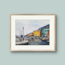On this page you can see what a selection of my paintings could look like with a suitable frame and mount. I use acid-free, archival quality window mounts in neutral colours. The example below is set in a simple light oak wooden frame. Watercolours always look best framed behind glass, which protects the work of art as well enhancing the overall appearance of the painting.